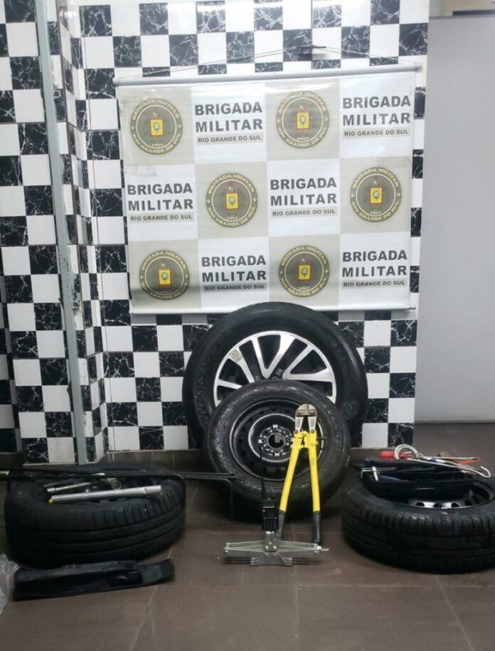 Com a dupla, os policiais encontraram um rádio comunicador na frequência da Brigada Militar (BM), quatros estepes, uma bateria e diversas ferramentas. A ocorrência foi registrada na Delegacia de Polícia de Pronto Atendimento de Canoas.