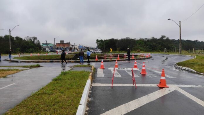 A Prefeitura de Canoas colocou, nesta terça-feira (7), cones e cavaletes para sinalizar a rótula da Avenida das Canoas, no bairro Mato Grande, onde dois carros caíram em um valão na última segunda (6).