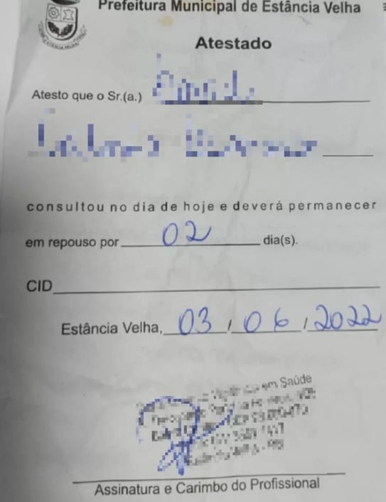 Procurada pela polícia, a empresa solicitou que o funcionário comparecesse para apresentar o atestado. Ao chegar, ele foi preso em flagrante. O homem, que não teve a identidade divulgada devido a Lei de Abuso de Autoridade, tabalha como zelador em uma empresa de segurança. Ele pode pegar até cinco anos de prisão.