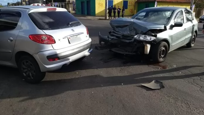 Quatro pessoas ficaram feridas após um acidente envolvendo dois carros na esquina da Guilherme Schell com a Rua Bartolomeu de Gusmão, no bairro Fátima, em Canoas. O acidente entre o Peugeot 206 e um VW Gol foi no final da tarde desta quarta-feira (14).