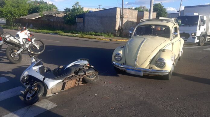 Um motociclista ficou ferido após a colisão com um fusca na tarde desta segunda-feira (24), em Canoas. A ocorrência foi no cruzamento das ruas Santa Catarina e República, no bairro Mathias Velho.
