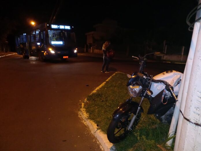 Um motociclista ficou ferido após a colisão com um ônibus na noite desta segunda-feira (24) em Canoas. A ocorrência foi no cruzamento da Avenida Araguaia com a Rua Pirapó, no bairro Igara.