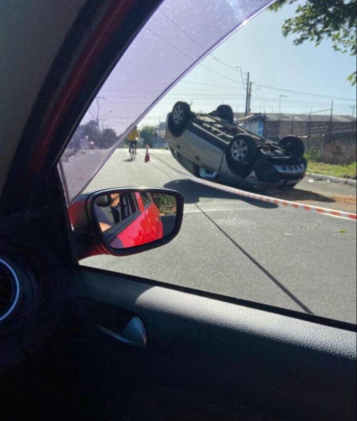 Na manhã deste sábado (17), um carro capotou em Canoas, no bairro Mathias Velho, na rua Campinas.