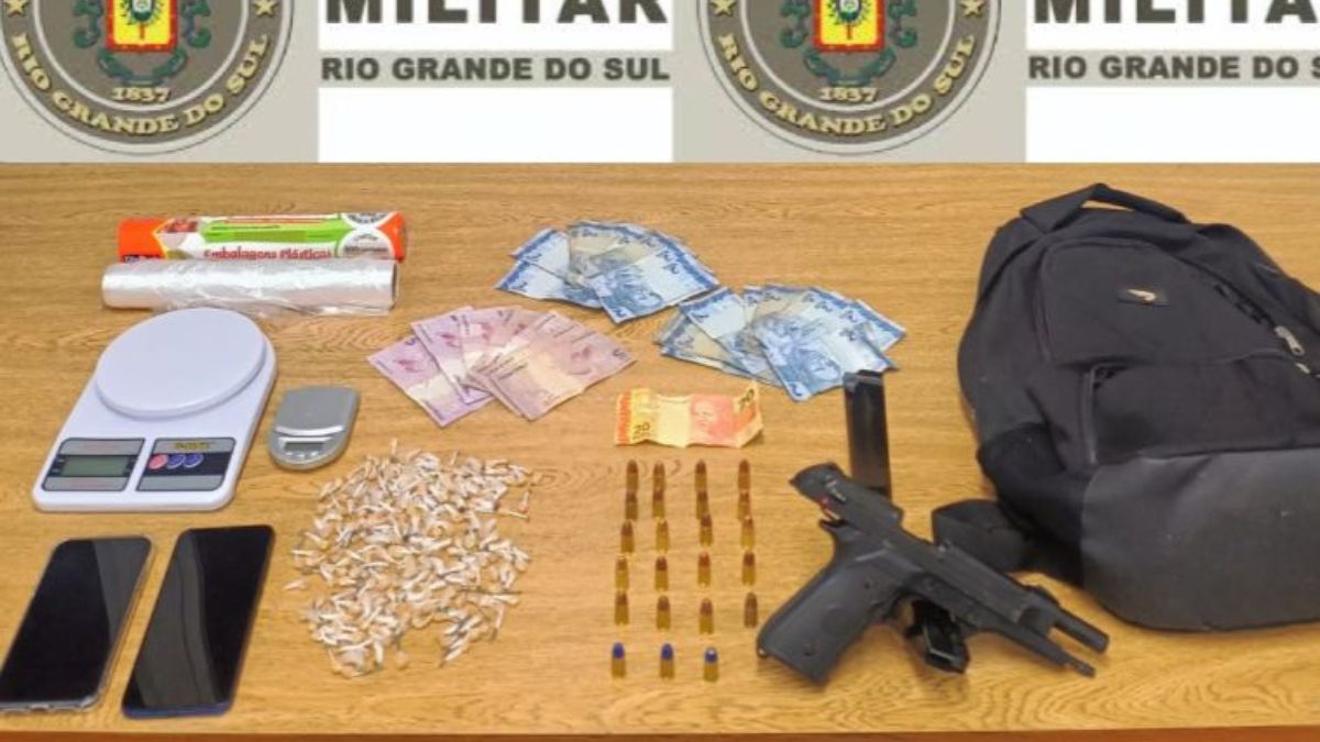 De acordo com a Brigada Militar (BM), policiais faziam policiamento ostensivo pelo bairro quando abordaram a dupla. Com eles, durante a revista pessoal, os PMs encontraram uma arma de fogo, munições e drogas.