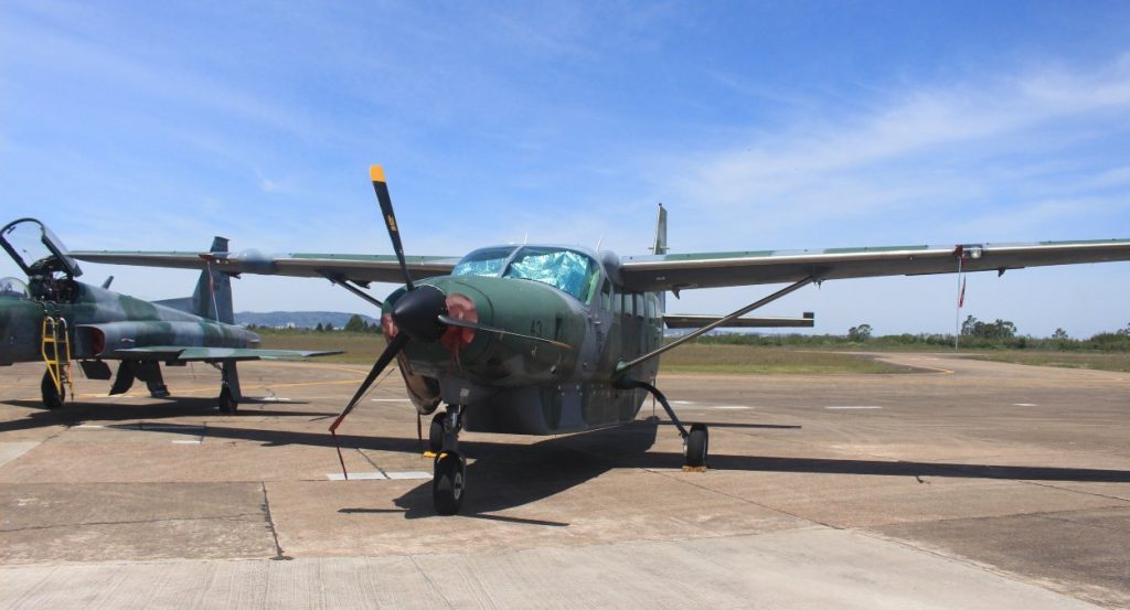 Dentro do hangar, chamavam a atenção duas aeronaves da Força Aérea Brasileira (FAB). Uma delas era era um C-95 bandeirante. O avião é utilizado para o transporte de pessoas e cargas.