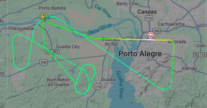 Porém, 15 minutos após a decolagem, o piloto começou uma volta para a esquerda sobre a região de Charqueadas e pediu para retornar.