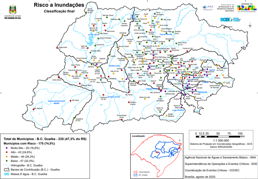 Além disso, o estudo identificou que parte dos municípios afetados em 2024 continua altamente exposta a novos desastres, especialmente em zonas ribeirinhas e bairros construídos em áreas naturalmente alagáveis.