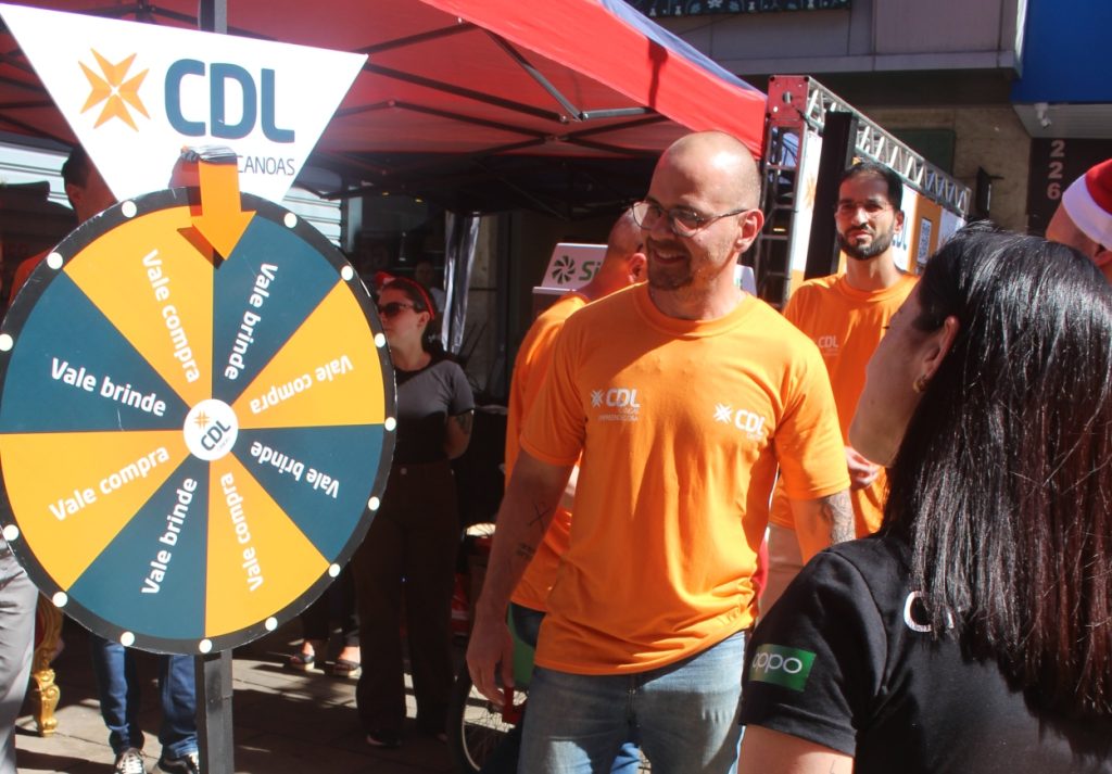 A Câmara de Dirigentes Lojistas de Canoas (CDL) promoveu, na tarde desta quinta-feira (18), a ação “Gire e Ganhe”, iniciativa voltada à valorização do comércio local e ao fortalecimento do movimento no centro da cidade durante o período natalino.