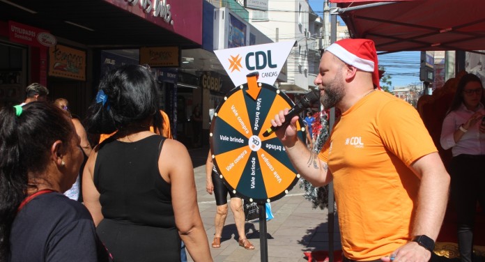 A Câmara de Dirigentes Lojistas de Canoas (CDL) promoveu, na tarde desta quinta-feira (18), a ação “Gire e Ganhe”, iniciativa voltada à valorização do comércio local e ao fortalecimento do movimento no centro da cidade durante o período natalino.