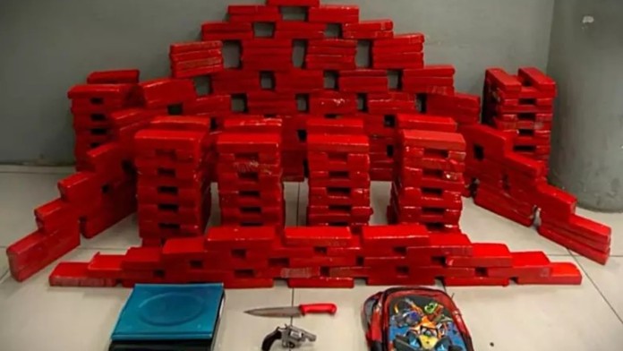 Durante a abordagem, os policiais localizaram cerca de 240 quilos de maconha, além de um revólver, munições e uma balança de precisão. Diante do material apreendido, a mulher foi detida e autuada por tráfico de drogas e porte ilegal de arma de fogo.