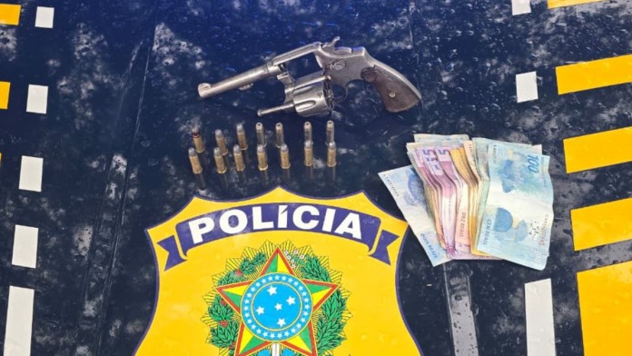 Conforme a PRF, durante buscas no carro, os policiais encontraram um revólver calibre .38 com a numeração raspada, carregado e pronto para uso. Além disso, mais oito munições do mesmo calibre, além de R$ 1.289 em espécie.