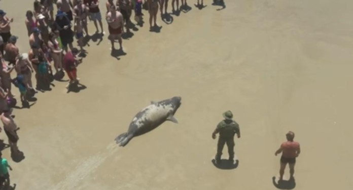 Logo após a segunda aparição do animal, policiais do Comando Ambiental da Brigada Militar de Tramandaí (CABM) e do efetivo do Corpo de Bombeiros, isolaram a área para evitar que turistas se aproximassem.