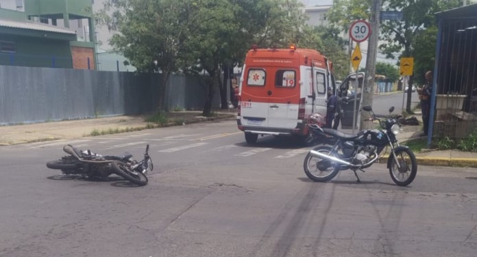 Uma mulher ficou ferida em um acidente de trânsito no inicio da tarde desta sexta-feira (16) em Canoas. O sinistro ocorreu no cruzamento das ruas Campinas e Caçapava, no bairro Mathias Velho.