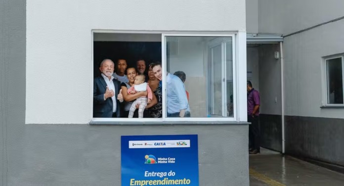 Pela manhã, Lula acompanhou a entrega de 1.276 moradias populares do programa Minha Casa, Minha Vida. O empreendimento vai beneficiar 5.104 pessoas, segundo o governo federal, e é destinado a famílias com renda bruta mensal de até R$ 2.850.