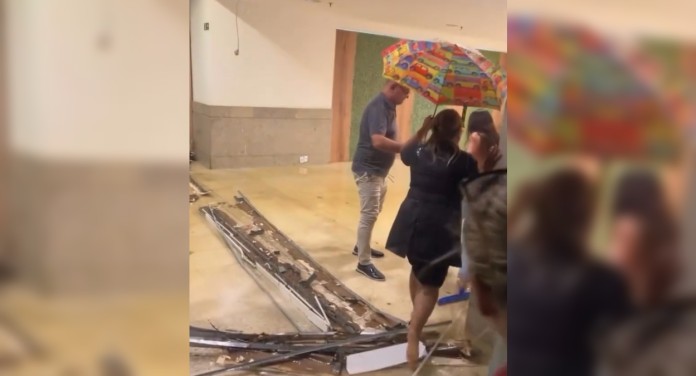 Imagens que circularam nas redes sociais mostram água jorrando pelo teto do shopping, formando verdadeiras cascatas dentro do ambiente interno. Em alguns pontos, o acúmulo de água acabou comprometendo a estrutura, causando o desabamento de parte do forro.