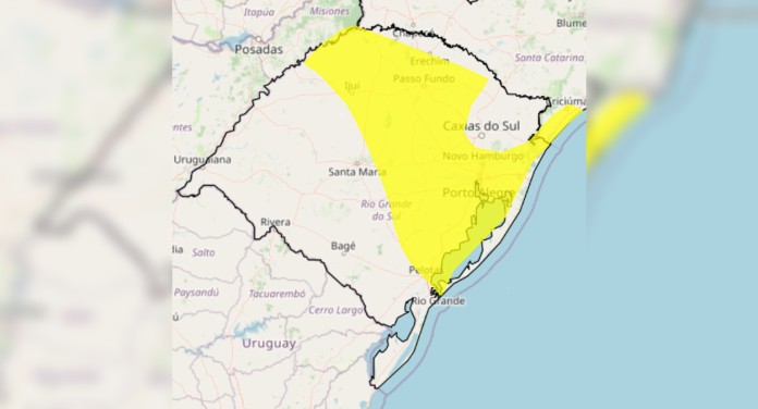 O comunicado é classificado como Perigo Potencial, indicando possibilidade de transtornos em diversas regiões do Estado. Além do Rio Grande do Sul, áreas de Santa Catarina também estão na área de abrangência do aviso.
