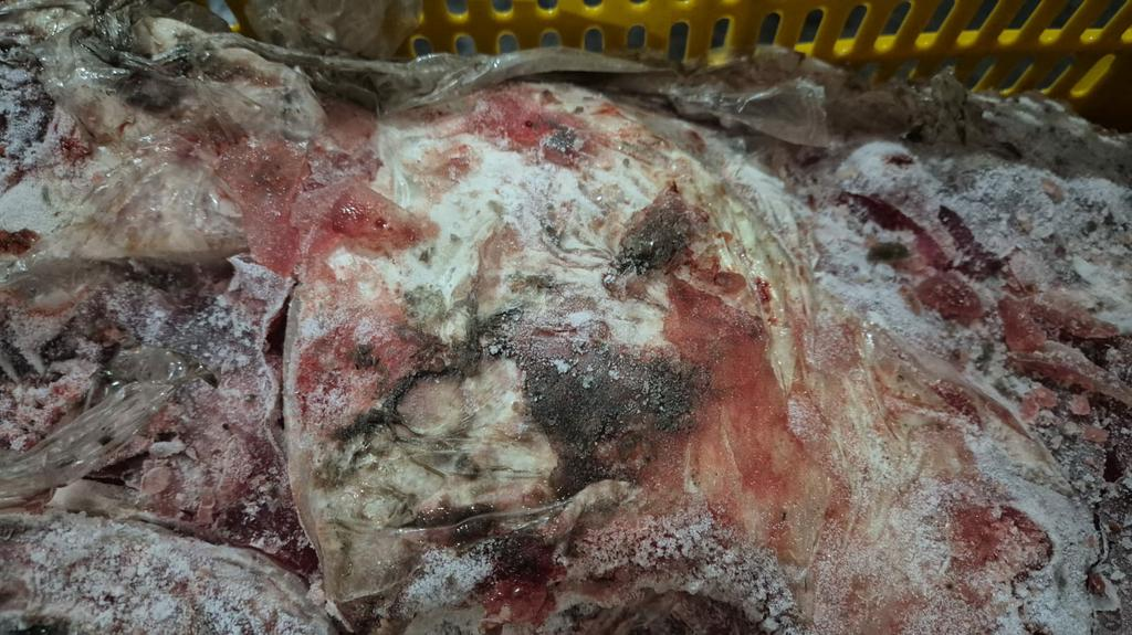Nos contêineres e áreas internas do estabelecimento, as equipes localizaram carnes bovina, suína, ovina e de frango, além de miúdos, bacon, hambúrgueres e diversos tipos de pescados.