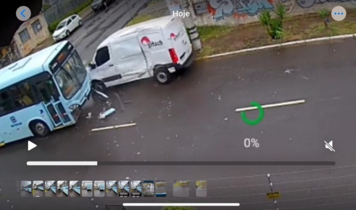 Imagens de câmera de monitoramento flagraram o momento do acidente de trânsito em Canoas, que ocorreu na tarde desta terça-feira (24), no bairro Niterói. A colisão deixou cinco pessoas feridas. O acidente envolveu um ônibus da empresa Transcal e um veículo de entrega de encomendas no cruzamento da Rua Lajeado com a Avenida Marechal Rondon. Confira o vídeo abaixo.