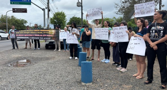 Alunos, pais e integrantes da comunidade escolar da Escola Estadual de Ensino Médio Érico Veríssimo em Canoas se reuniram em um protesto no final da manhã desta quarta-feira (25). A instituição de ensino está desde dezembro de 2025 sem energia elétrica.