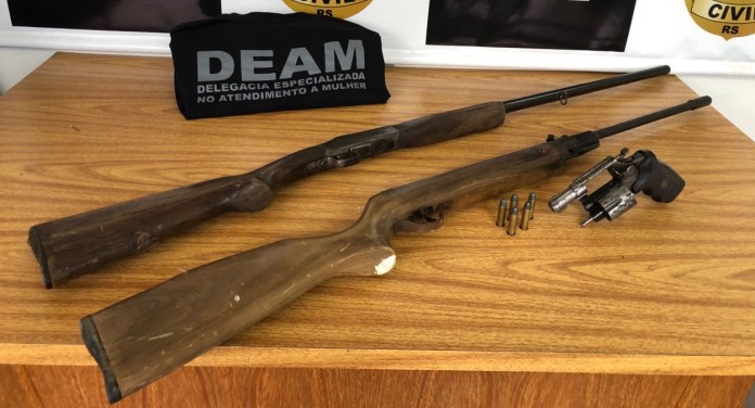 Quando foi registrar a ocorrência, a mãe relatou que haviam três armas de fogo que pertenciam ao companheiro dela e que o filho sabia o local, o que aumentava o medo dela. As armas foram apreendidas.