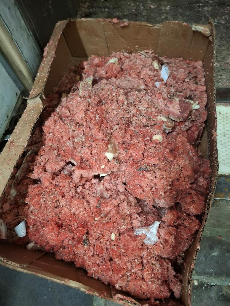 Entre os itens recolhidos pelos fiscais, um detalhe chamou a atenção das autoridades: bucho bovino com validade vencida desde 2017.