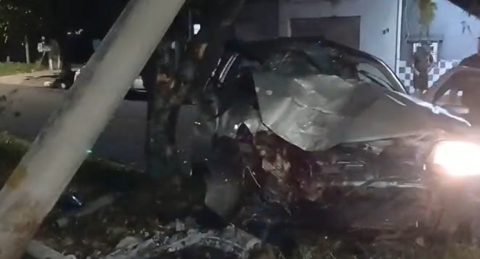 Um acidente em Canoas chamou a atenção de moradores durante a madrugada desta terça-feira (17), após um carro colidir contra um poste em uma das principais avenidas da cidade.