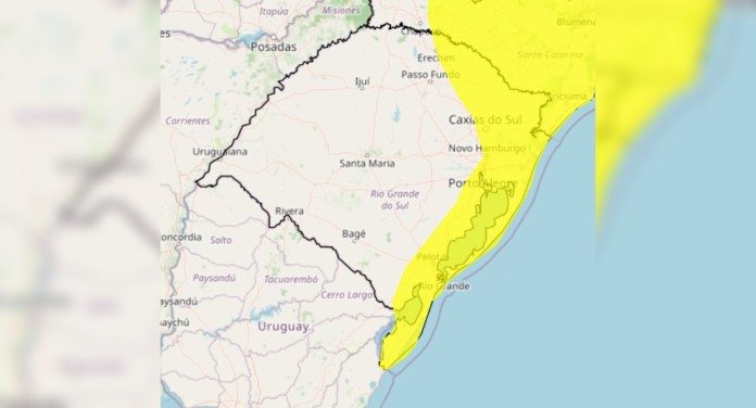 Dentro do estado, o alerta de chuva no RS atinge principalmente: