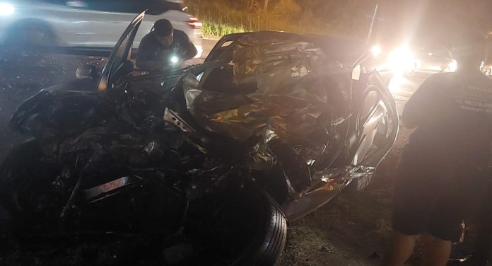 De acordo com a informações preliminares, o Renault Sandero colidiu frontalmente com um caminhão. Os dois criminosos morreram no local.