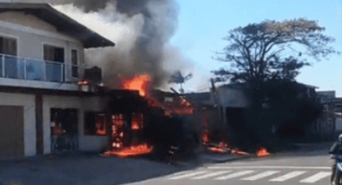 Ao cair, a aeronave e o restaurante pegaram fogo.