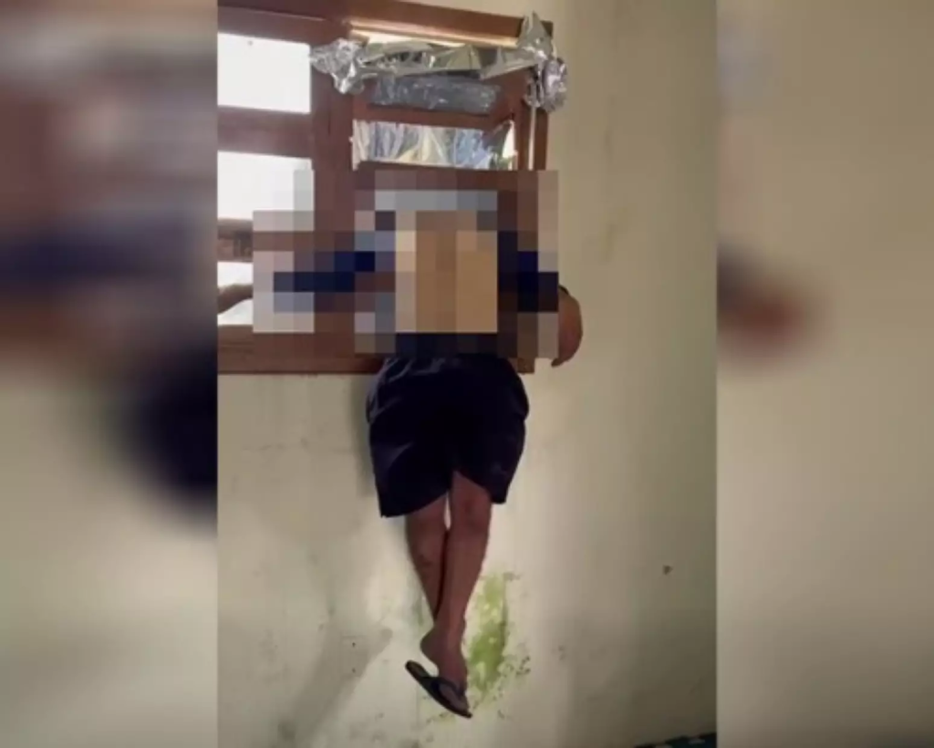 Na tentativa de acesso, ele conseguiu passar apenas parte do corpo pela janela de um dos cômodos da igreja.