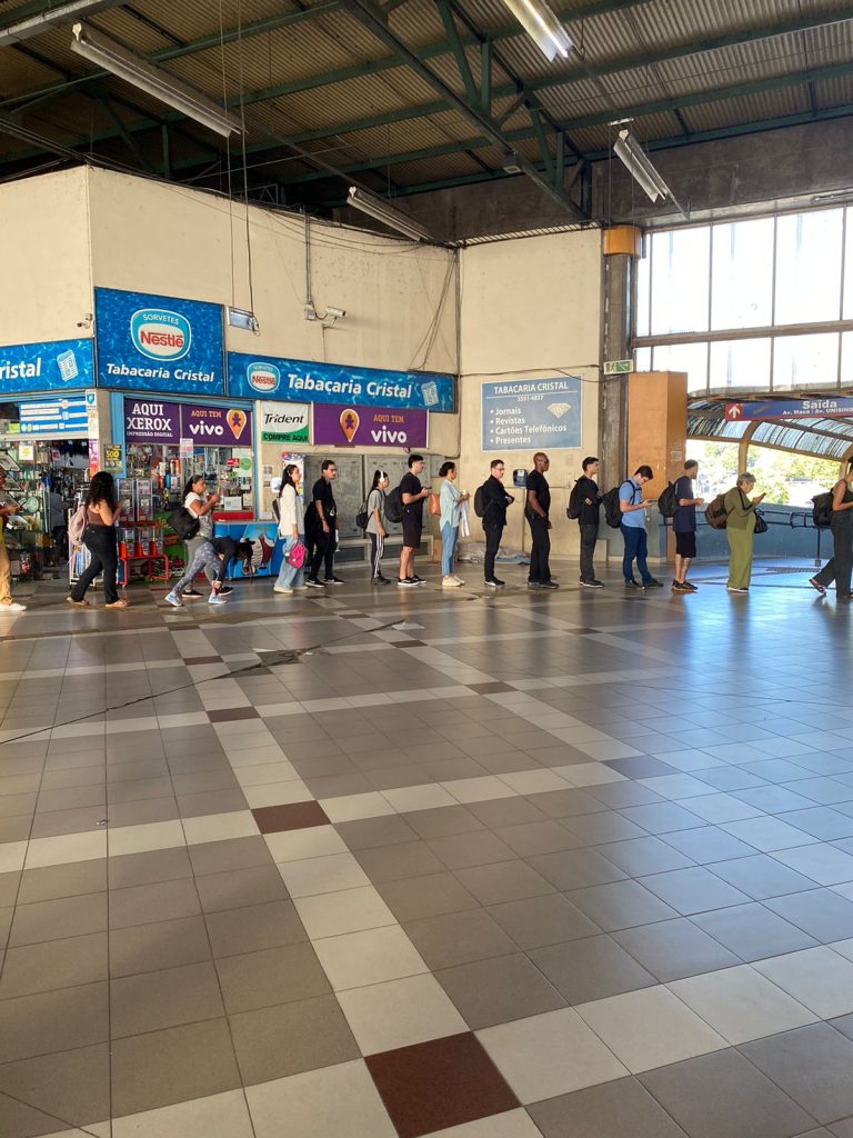 De acordo com apuração da reportagem no local, o tempo de espera para embarque está girando entre 10 e 15 minutos, considerado relativamente rápido diante da alta demanda.