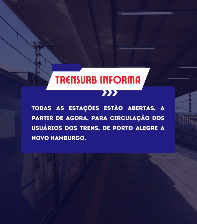 A Trensurb informou pelas suas redes sociais, na tarde desta terça-feira (14), a normalização completa da operação do sistema metroviário após os danos causados pelo tombamento de um caminhão na BR-116, ocorrido no último domingo (12). Com a atualização, todas as estações estão abertas e em funcionamento, com circulação liberada de Porto Alegre a Novo Hamburgo.