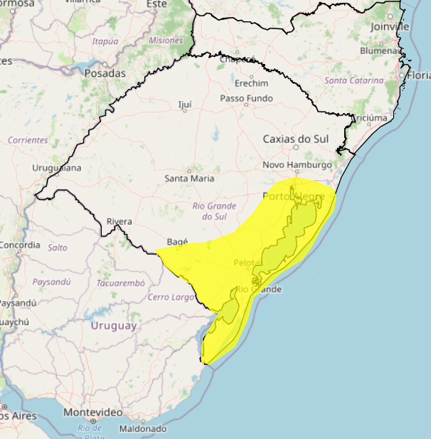 Um novo alerta de vendaval no RS foi emitido pelo Instituto Nacional de Meteorologia (Inmet) nesta sexta-feira (17).