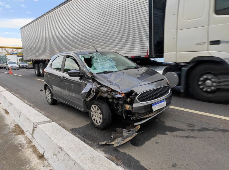 Motorista perde controle e carro capota na BR-116 em Canoas