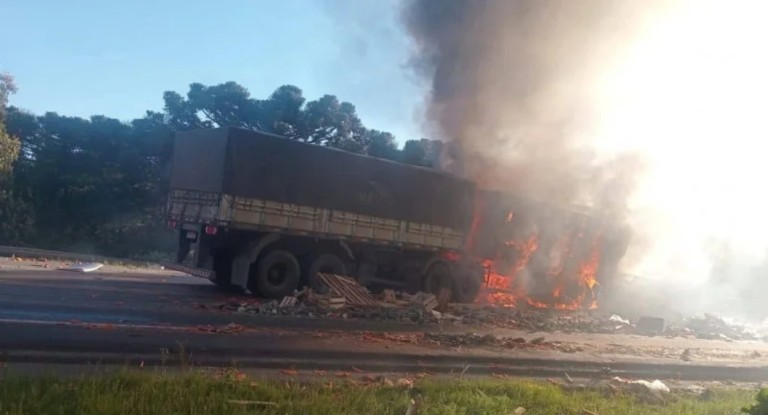 BR-386: acidente entre caminhões causa incêndio e bloqueio total da rodovia