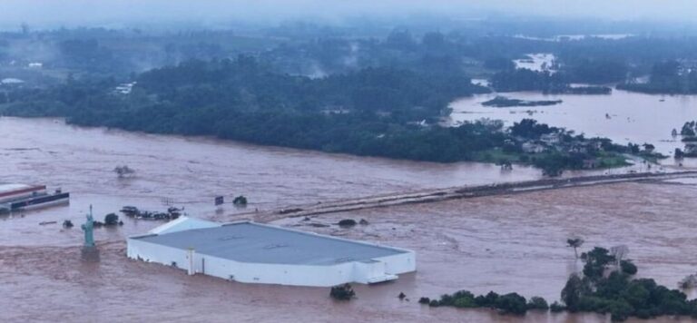 Loja Havan está totalmente coberta pela água do Rio Taquari