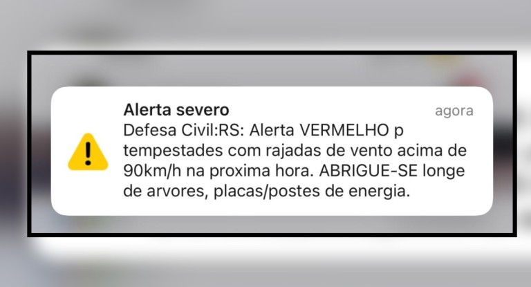 Pela primeira vez, Defesa Civil emite alerta vermelho de tempestade em celulares de moradores no RS