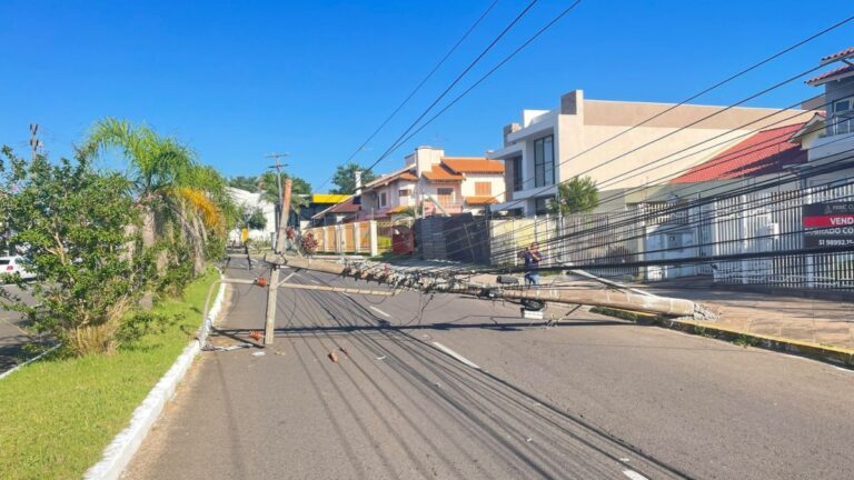 Moradores de Canoas continuam sem luz após carro derrubar postes