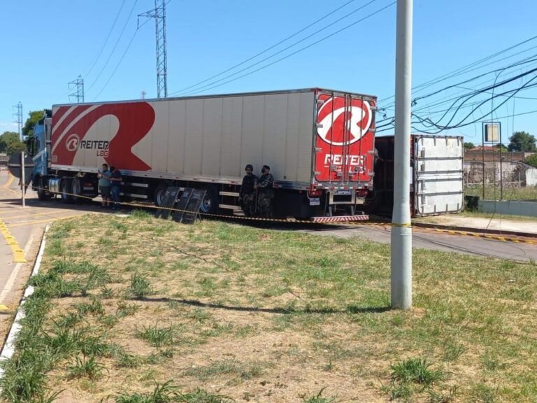 Caminhão carregado de carne tomba e Brigada Militar reforça policiamento para evitar saques na carga