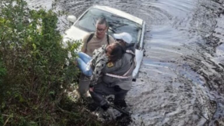 Brigada Militar resgata mulher em carro submerso