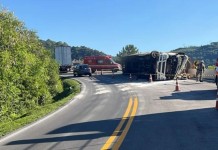 Homem morre após caminhão carregado de biscoito tombar em rodovia