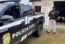 No imóvel, os policiais encontram capas de coletes a prova de balas com o logotipo da Polícia Civil, da Polícia Federal e do DEIC