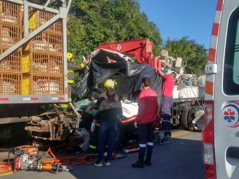 Caminhão fica sem freios, bate na traseira de outro e deixa duas pessoas mortas