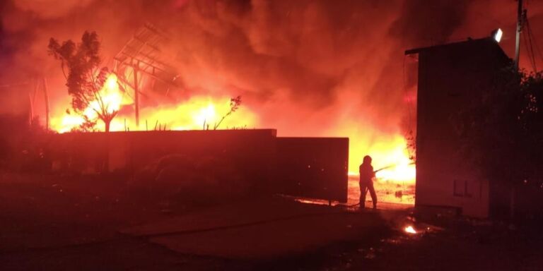 Incêndio destrói diversas casas; Bombeiros estão no local