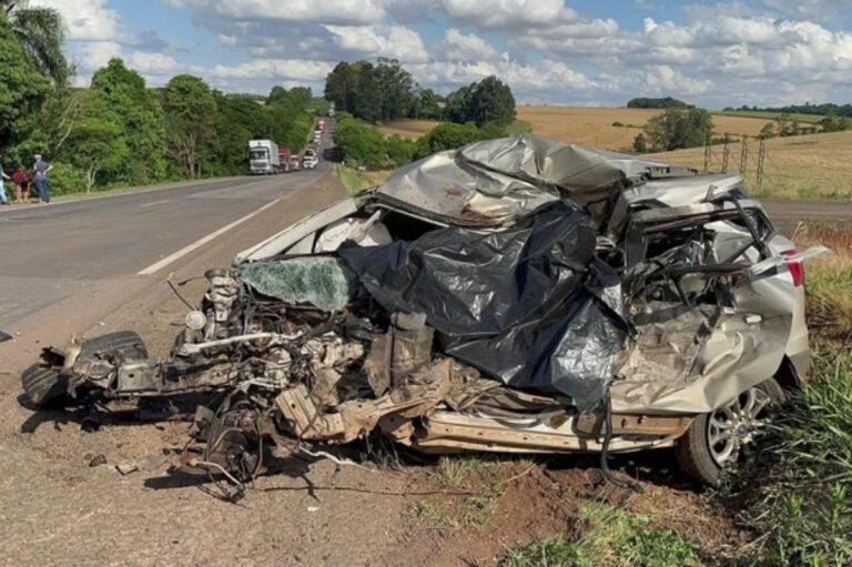 Motorista morre e outra pessoa fica ferida após colisão frontal entre carro e caminhão
