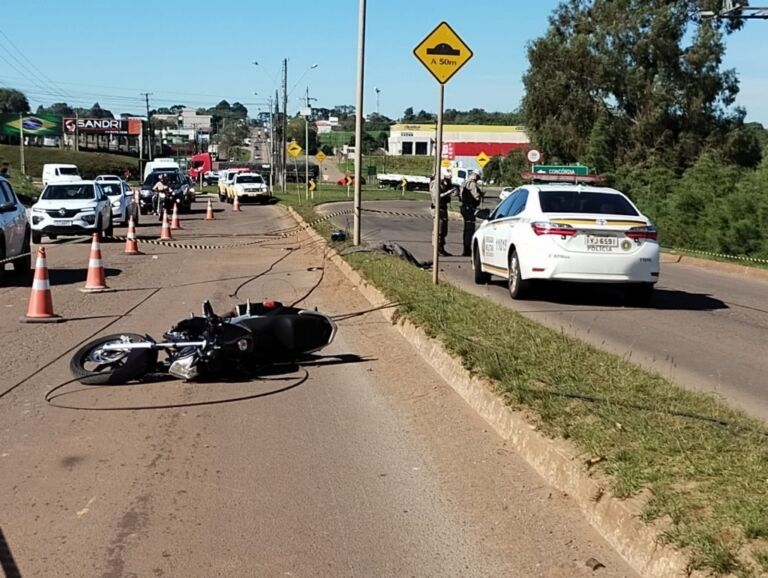 Mulher fica ferida em acidente entre carro e moto em Canoas