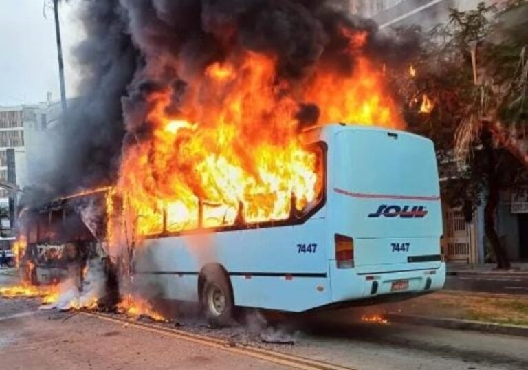Ônibus pega fogo após motorista parar em semáforo; Passageiros saíram às pressas
