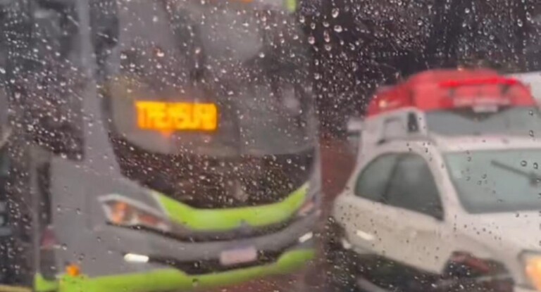 Acidente entre carro e ônibus bloqueia rodovia em Canoas