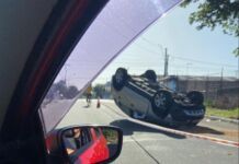 URGENTE CANOAS | Carro capota e bloqueia rua