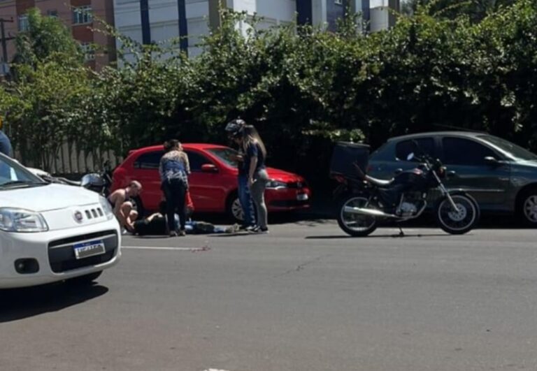 Acidente entre carro e moto bloqueia avenida no Centro de Canoas